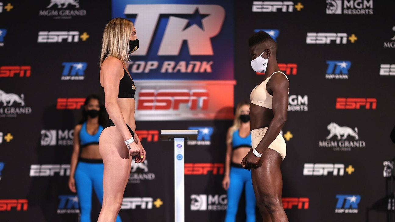 Junior lightweight contender Mikaela Mayer (12-0, 5 KOs) puts her unbeaten record against Helen Joseph in the main event of Tuesday’s Top Rank boxing card at the MGM Grand Conference Center in Las Vegas (ESPN, 9 p.m. ET). This is the first time a women’s fight has been the main event for Top Rank card on ESPN.