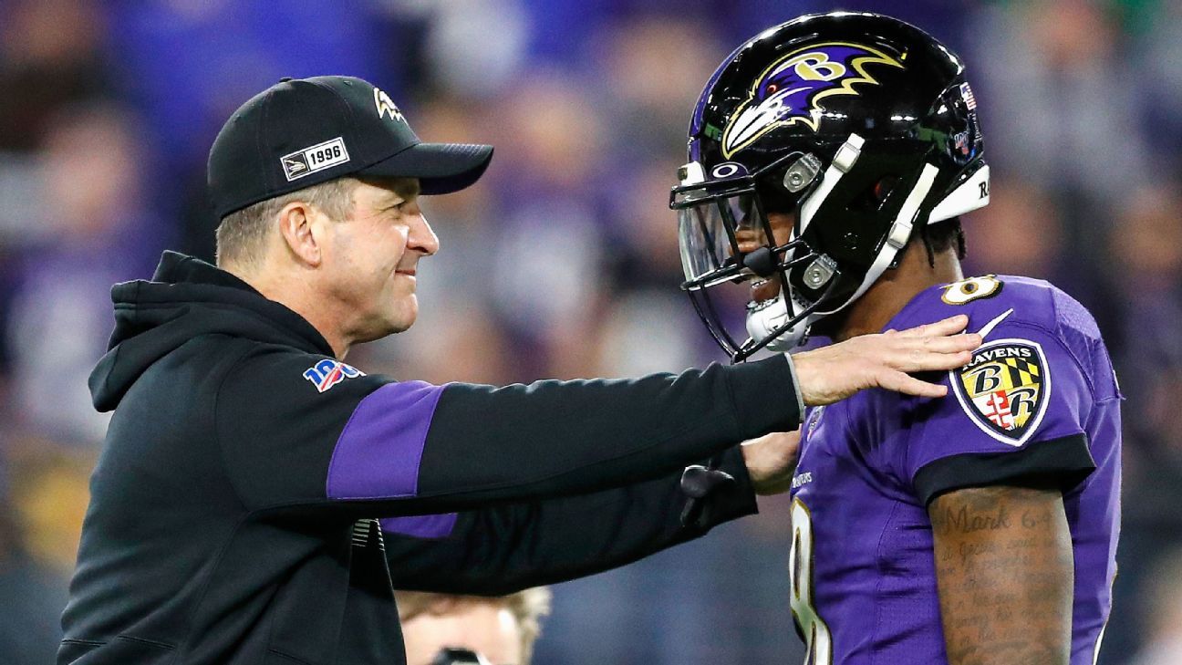 Harbaugh revealed how much it meant to tie the 1974-1977 Steelers by breaking what some considered football etiquette on the final play of a 23-7 win over the Denver Broncos on Oct. 3. Instead of taking a knee with three seconds remaining, Baltimore had quarterback Lamar Jackson run for 5 yards to keep its streak of consecutive games with over 100 yards rushing alive. ESPN Stats & Information couldn’t find a single instance in the last 25 years of a team gaining yards when leading by double digits in the final five seconds, and Broncos coach Vic Fangio ripped the Ravens, saying “it was kind of bulls—.”