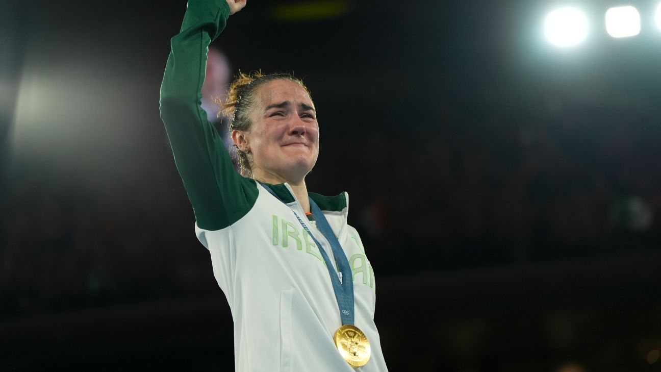 A delighted Harrington, roared on by a sea of Irish fans at Court Philippe-Chatrier, embraced her coaches in her corner before falling to her knees in the ring and thumping the mat. She delighted her fans with a rousing rendition of “Grace.”